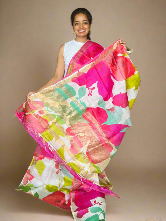 Multicolour Tussar Silk Saree with Prints